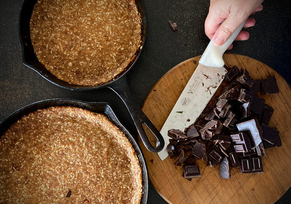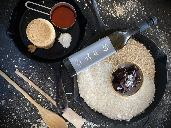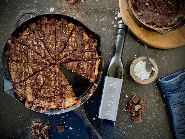We’ve partnered with Allpress Olive Groves on a series of recipes using their Extra Virgin Olive Oils – crafted from 100% Waiheke Island olives. First up is this delicious sweet and slightly salty slice made in our Legacy Pan using number29. More in the series to come!