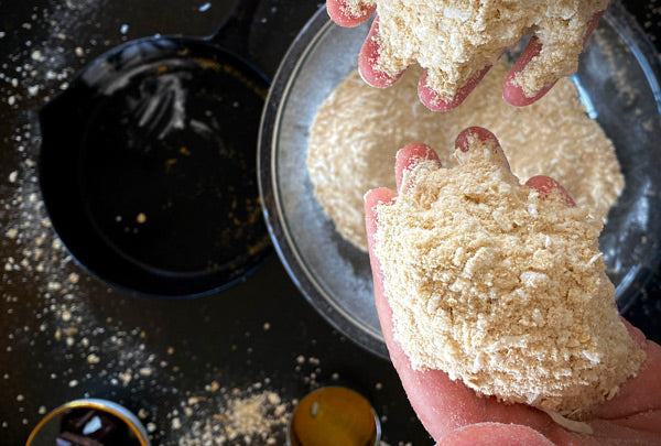 Mix dry ingredients together with your hands, making sure you work out any lumps between your fingers.
