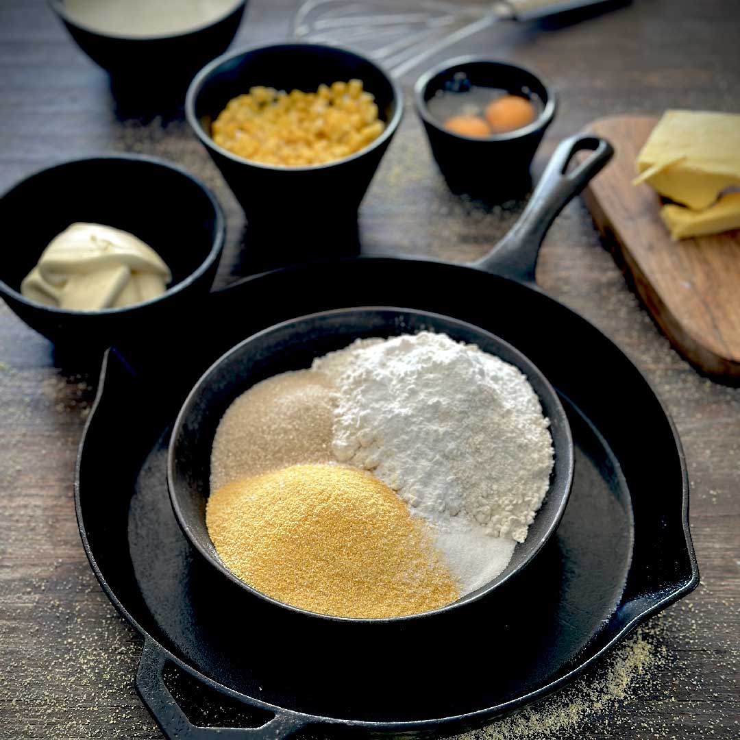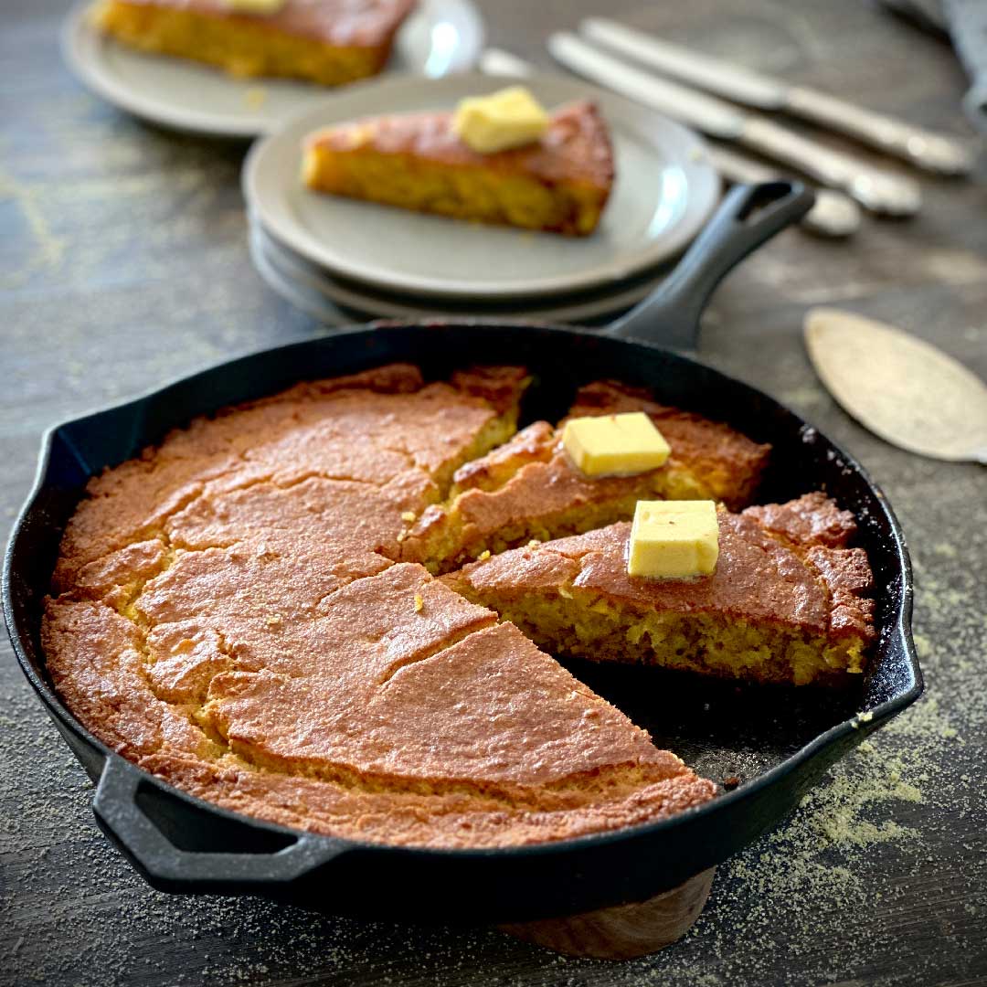 Cornbread evolved from simple corn-based dishes in America to become a beloved comfort food with regional variations across the United States. A crunchy burnt butter crust makes this version from Lennox Hastie extra delicious. He initially made this for us in an Ironclad Junior at Firedoor. We've adapted the recipe to fit our 28cm Legacy pan so you can share with friends and family.