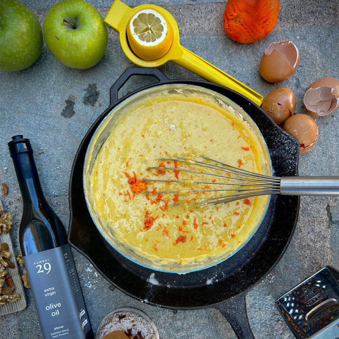 Because I LOVE baking, I have adapted her recipe with extra virgin olive oil replacing the butter. And not any old EVOO - Number29 with its apple tasting notes, is juicy and herbaceous and turns this cake into a sublime taste experience. The EVOO creates an almost crunchy outer crust with a very moist soft crumb.