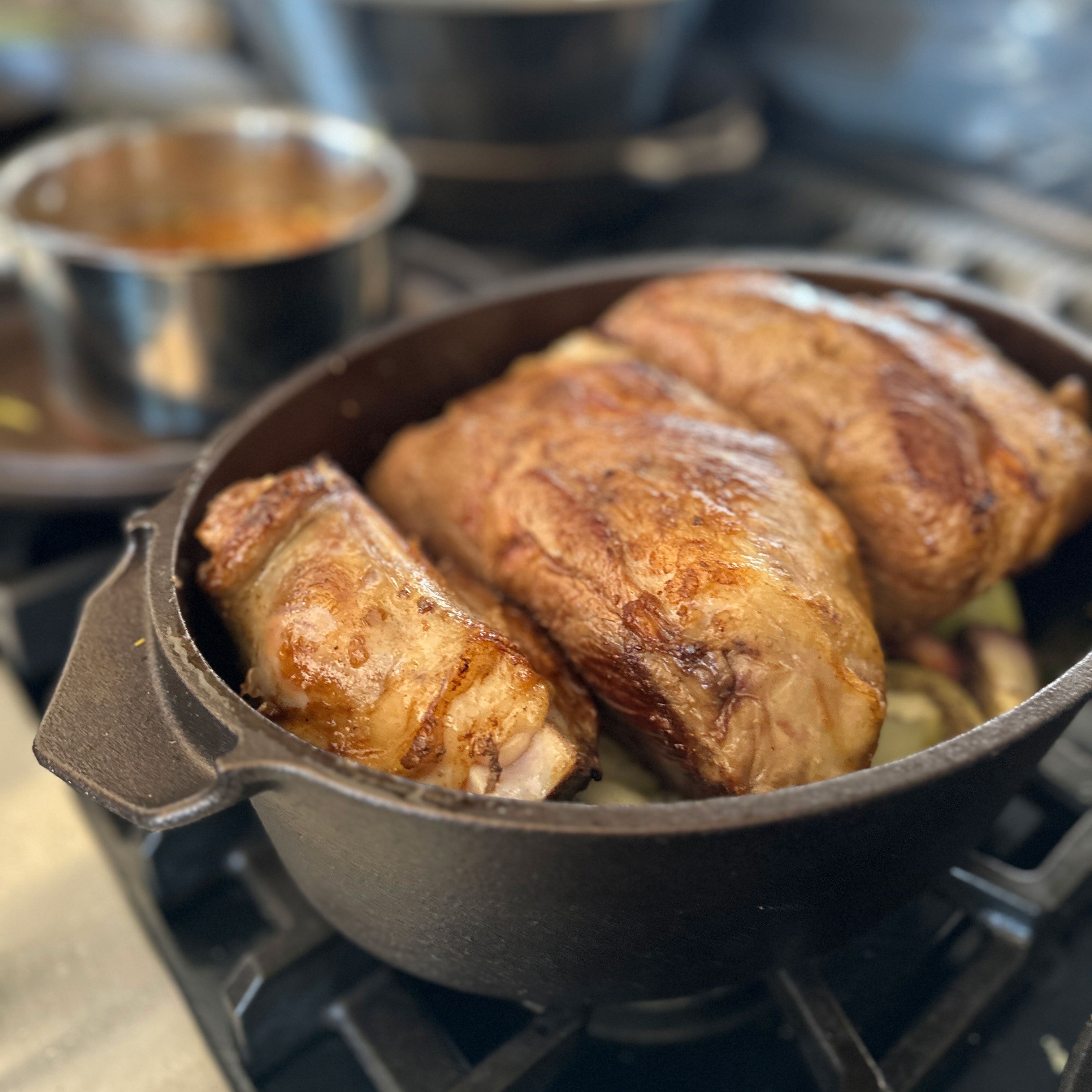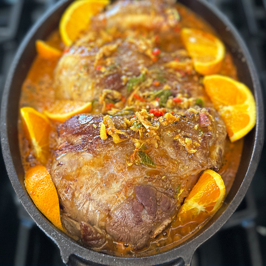 1 lamb leg (if the whole leg doesn’t fit into the Dutch Oven, cut into pieces to fit)